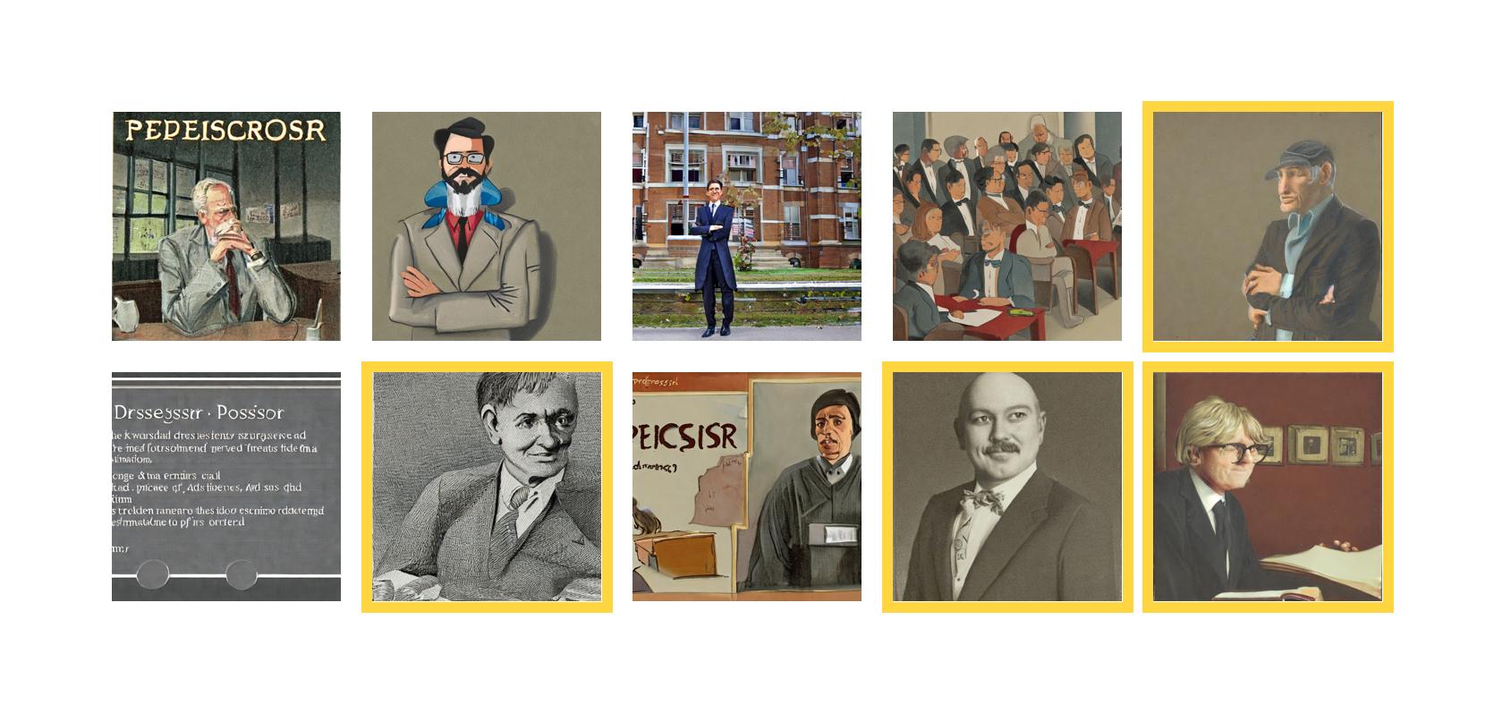 The pictures are largely of white, old men who fit into the stereotype of a professor, but is not representative of the diversity.