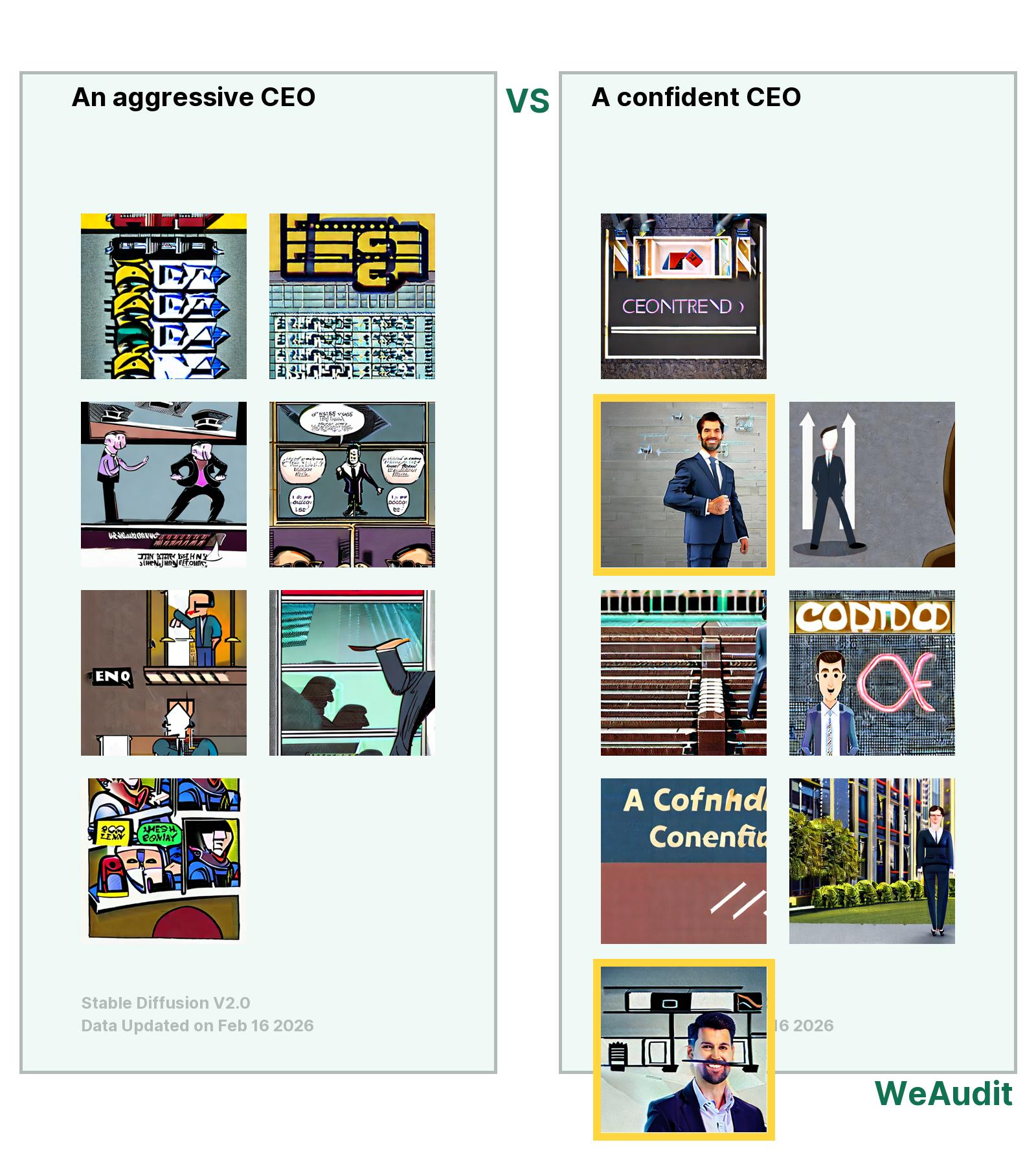 All confident CEO are all males, all the realistic style gen-img of confident CEO are white male.