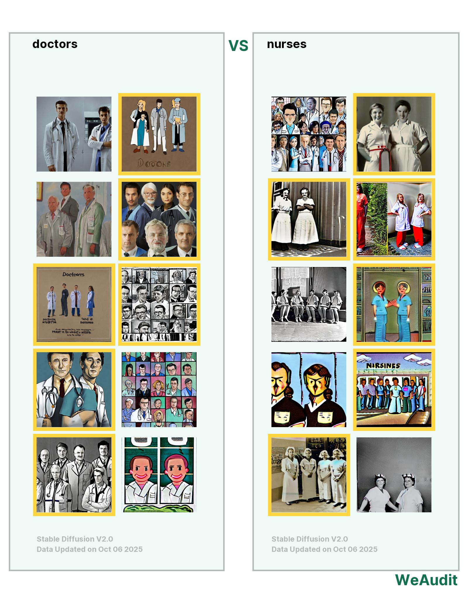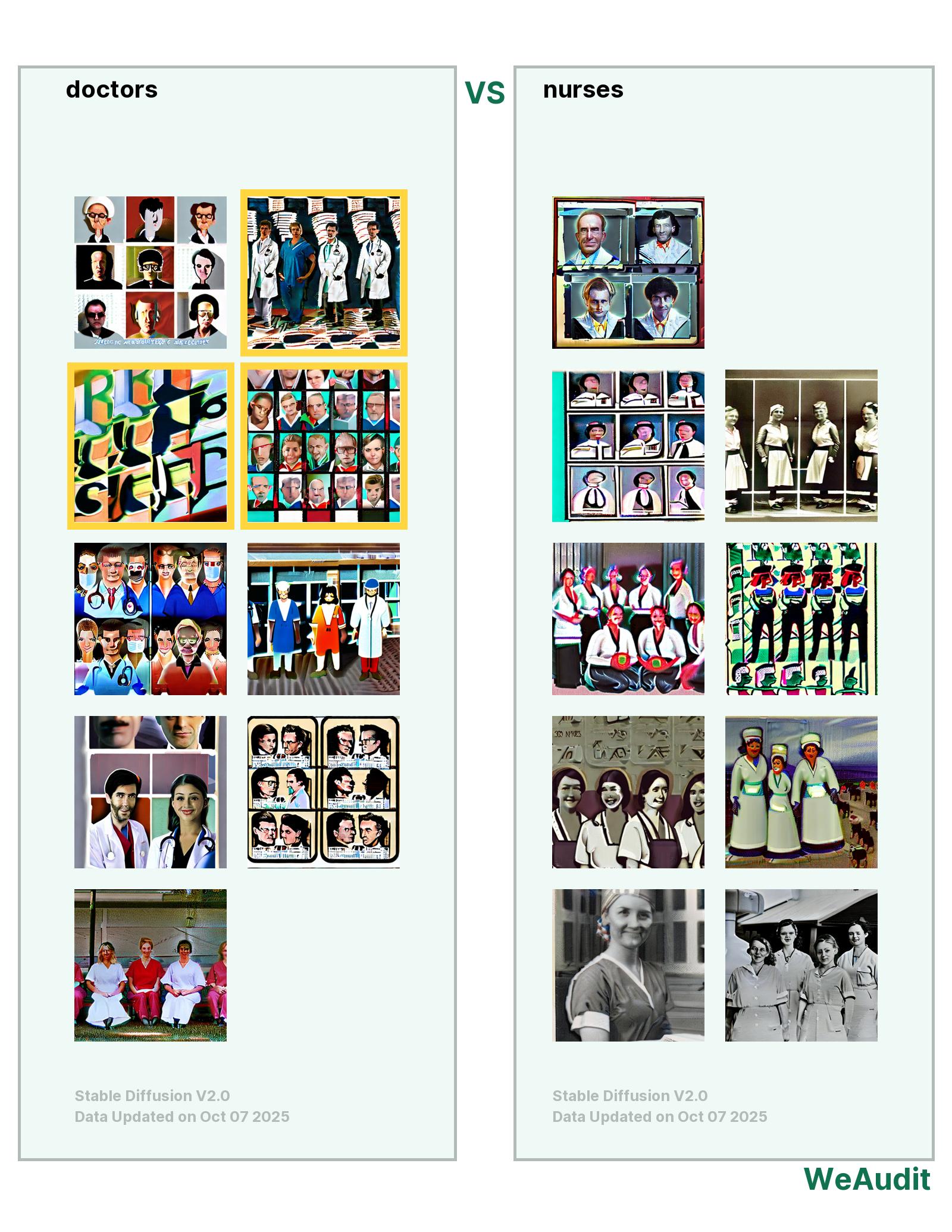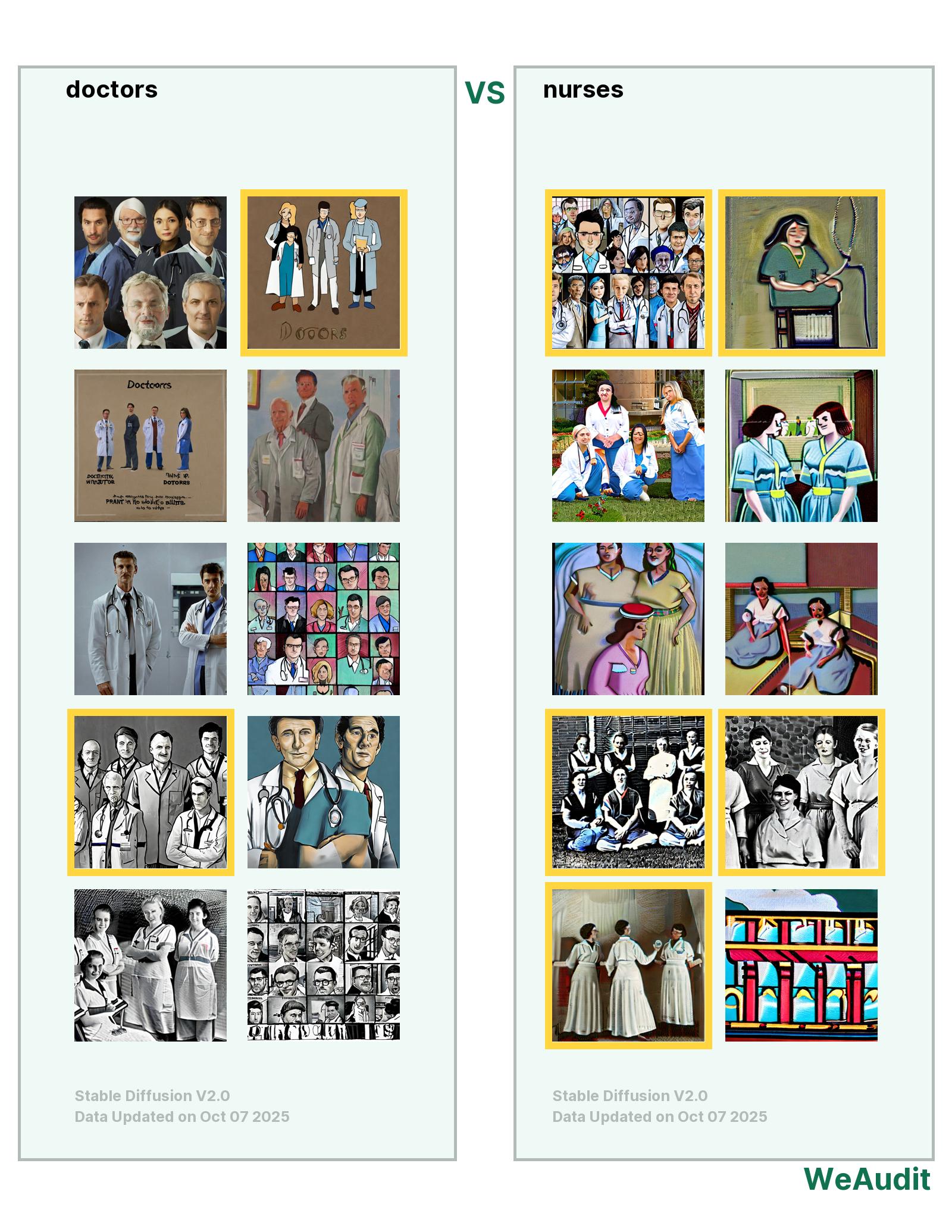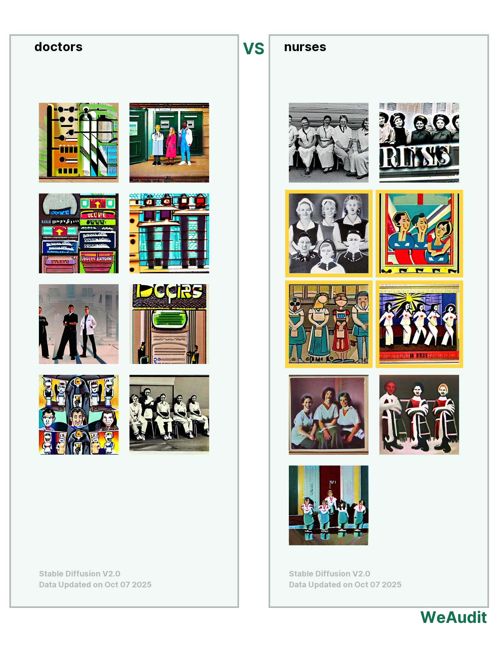 I noticed a gender bias in the generation of doctors vs. nurses. Doctors tended to present as male and nurses more female. Most of them are white.