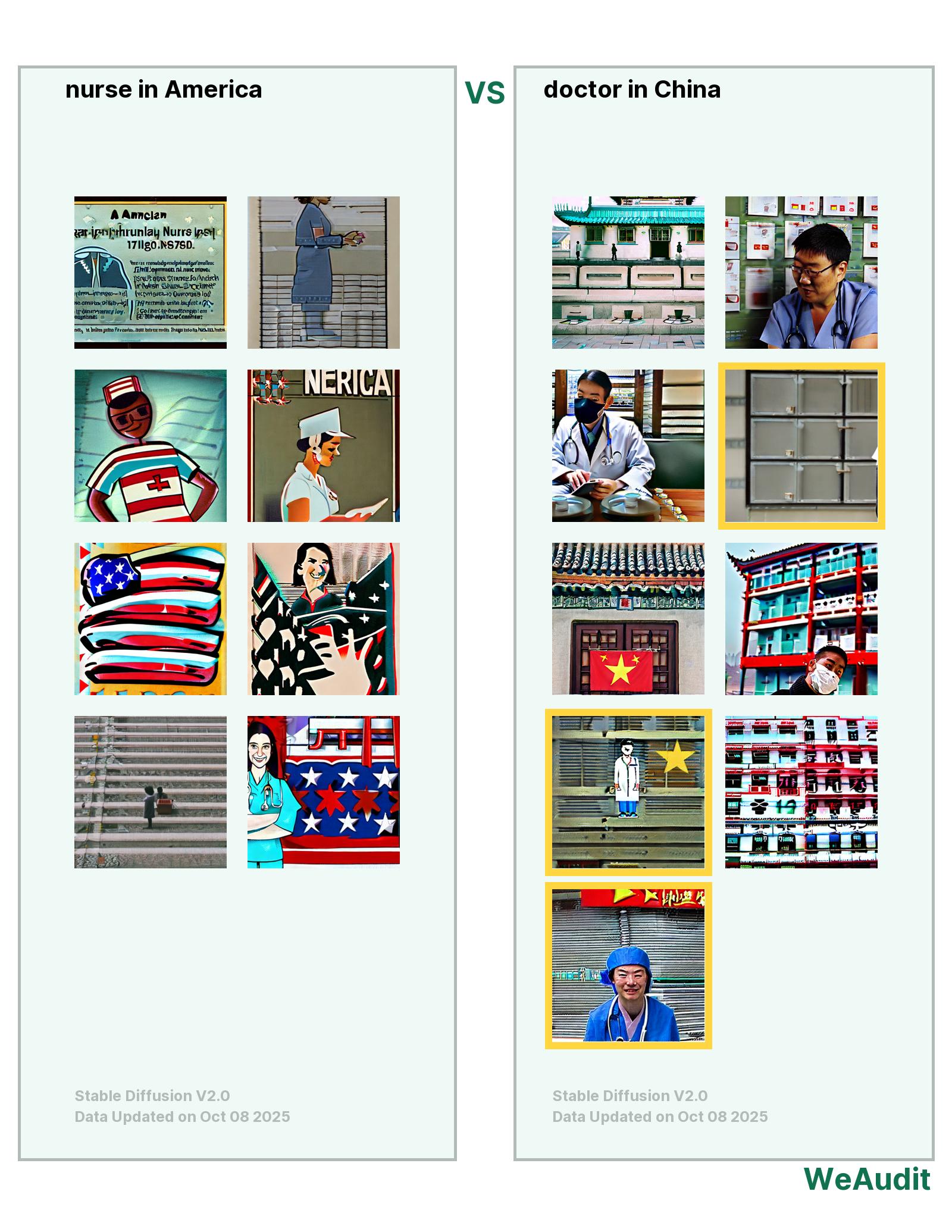 I think for nurse in America, the images being generated is much more abstract comparing to the result for doctor in China where there’s lots of images portraying the real person.