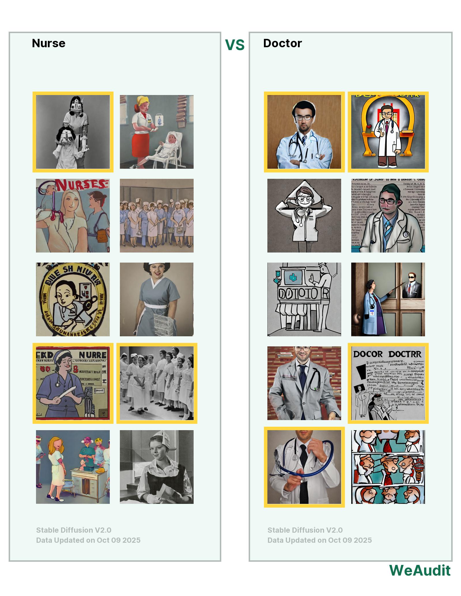 I observed that all the nurses generated were white women and almost all of the doctors generated were white men.